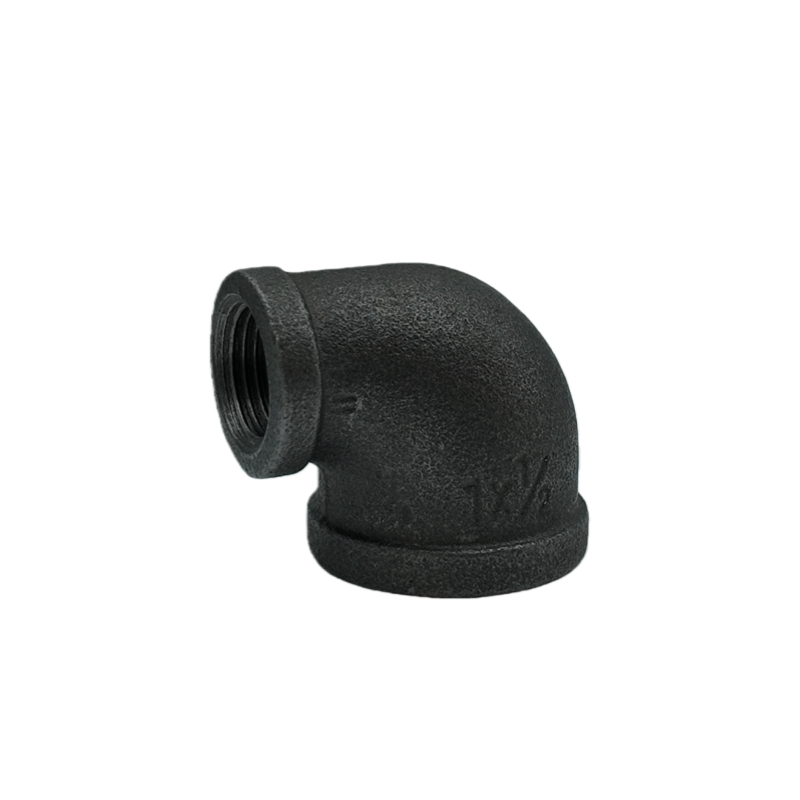 The black Reducing 90-degree elbow is a durable malleable iron pipe fitting designed to change the direction of water, gas, or fluid flow by 90 degrees. Available in long and short radius types, it connects directly to black iron pipes for secure and reliable installation.