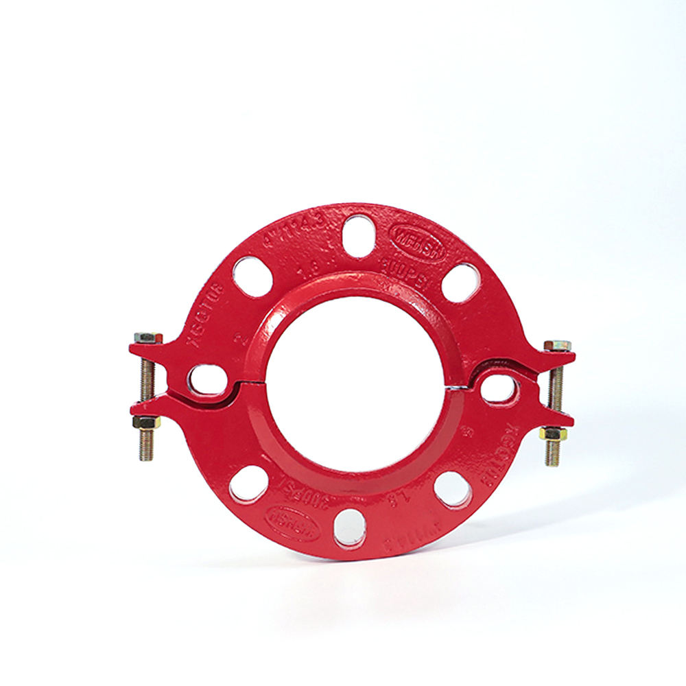 A Grooved Flange features a raised edge with bolt holes that align with matching flanges, providing a secure bolted connection. A gasket is placed between the flange faces to ensure a leak-resistant seal. Split Flanges, or two-piece flanges, allow installation over an existing pipeline without disconnecting the pipe, which is particularly useful in tight spaces or retrofit scenarios. Available in various pressure ratings, typically PN16 and PN25, these flanges are suitable for a wide range of industrial, commercial, and fire protection piping systems.