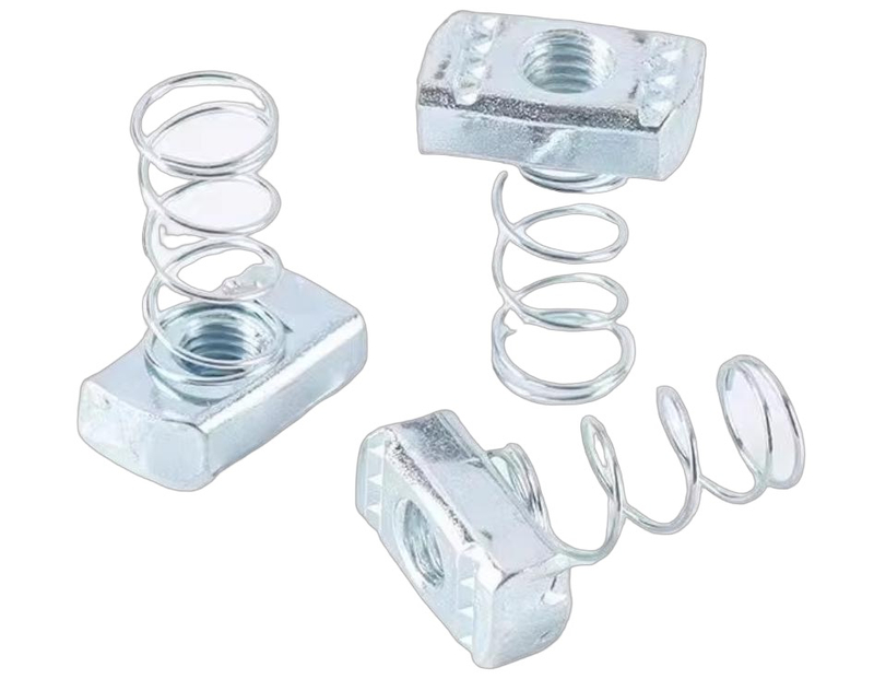 A spring nut is an essential fastening accessory used in strut channel framing systems. It is inserted into the channel and works together with bolts to secure clamps, brackets, plates, and other fittings to the support structure. Compared with ordinary nuts, a spring nut is easier to position inside the channel and helps simplify installation, especially in modular support systems.